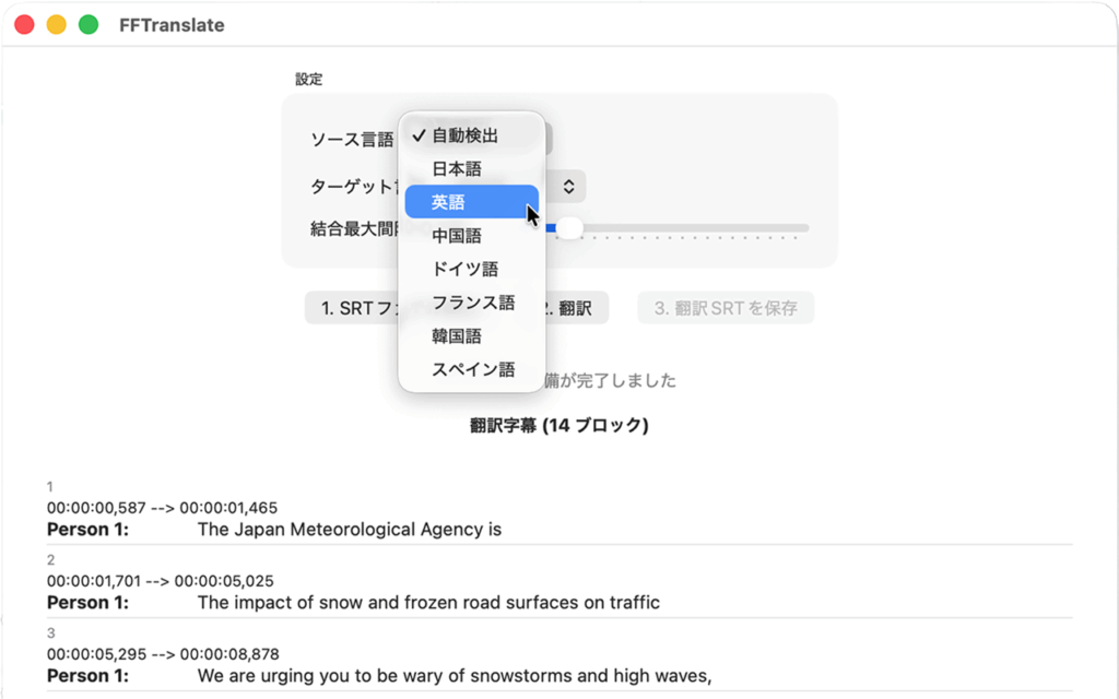FFTranslate ― Apple Silicon専用SRT翻訳アプリ – ]